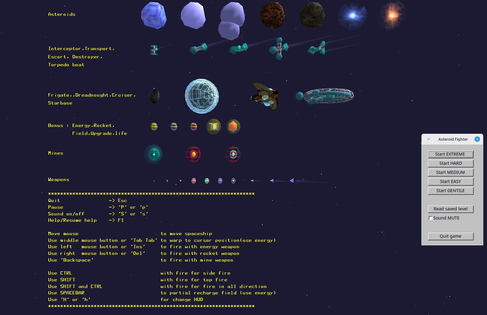 AsteroidsWarfield is an old-school space shooter written in C++ / OpenGL. The project started in 2003 and is still maintained as a personal experimental game.
